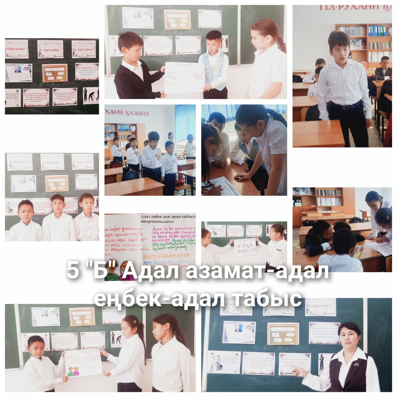 “Адал азамат” біртұтас тәрбие бағдарламасы аясында N5 Ақарал жалпы орта білім беретін мектеп - гимназиясында “Адал азамат- адал еңбек- адал табыс”, “Оян, ар мен адалдық”, "Адал табыс шен еңбекпен шыңдалады" тақырыптарында тәрбие сағаттары өтті. Мақсаты: оқушылардың бойында адалдық, әділдік, еңбекқорлық, жауапкершілік сынды адамгершілік құндылықтарды қалыптастыру.