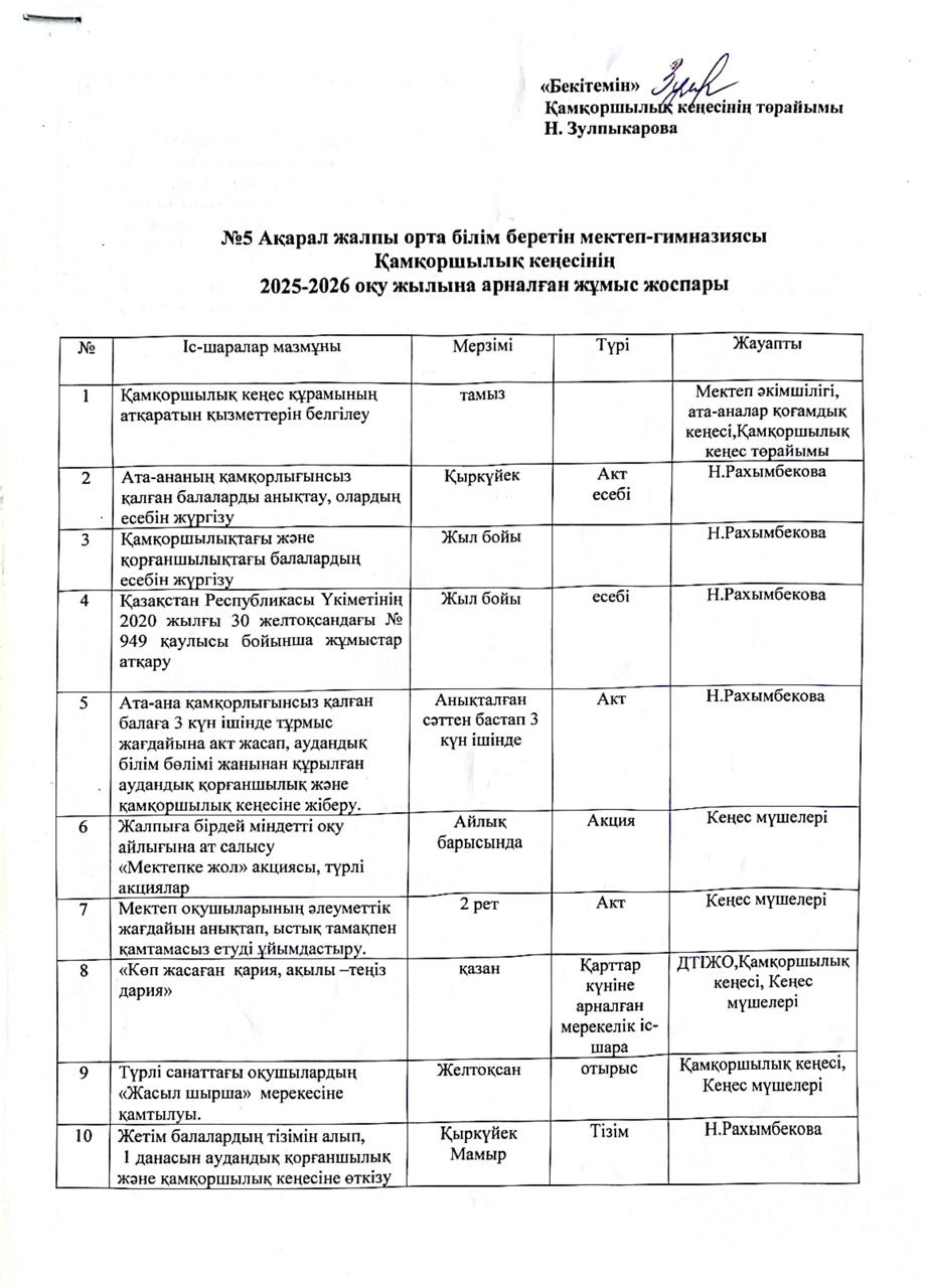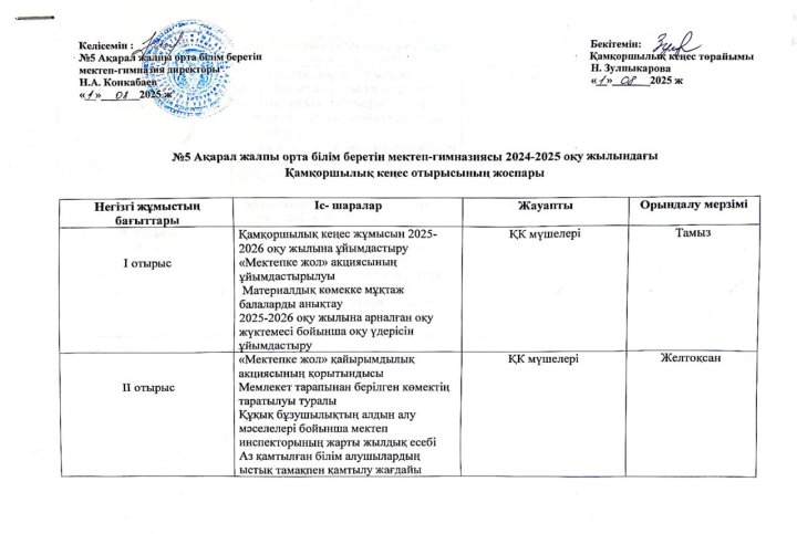 01 тамыз 2025 0 1 2 3 4 5 №5 Ақарал ЖОББМГ Қамқоршылық кеңесінің 2025-2026 оқу жылына арналған жұмыс жоспары