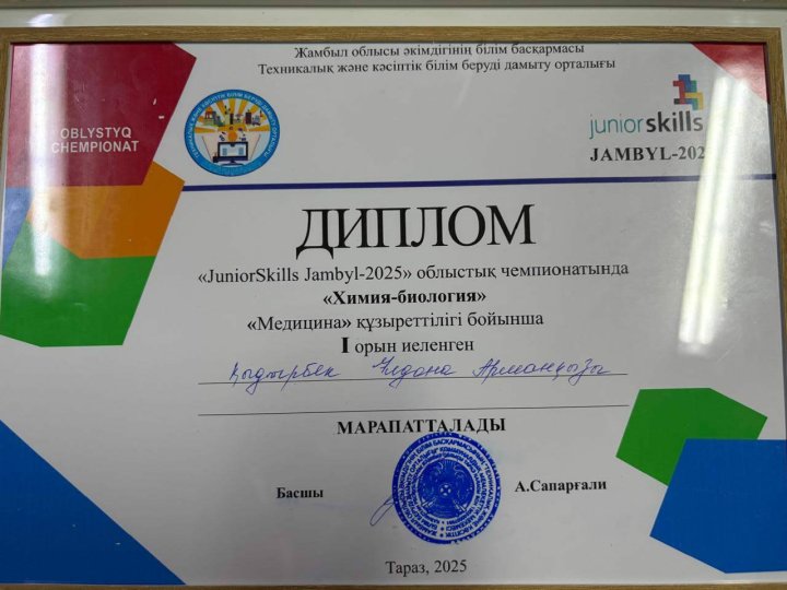 Жамбыл облысы әкімдігінің білім басқармасы мен техникалық және кәсіптік білім беруді дамыту орталығының ұйымдастыруымен 2025 жылдың 5 қарашада «JuniorSkills Jambyl-2025» облыстық чемпионаты өтті.