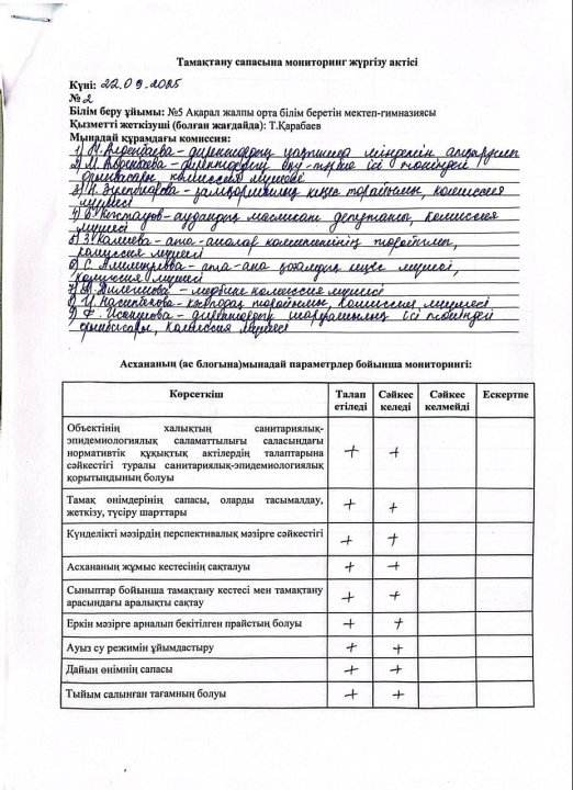 Тамақтану сапасына мониторинг жүргізу » ОШГ№5 Акарал
