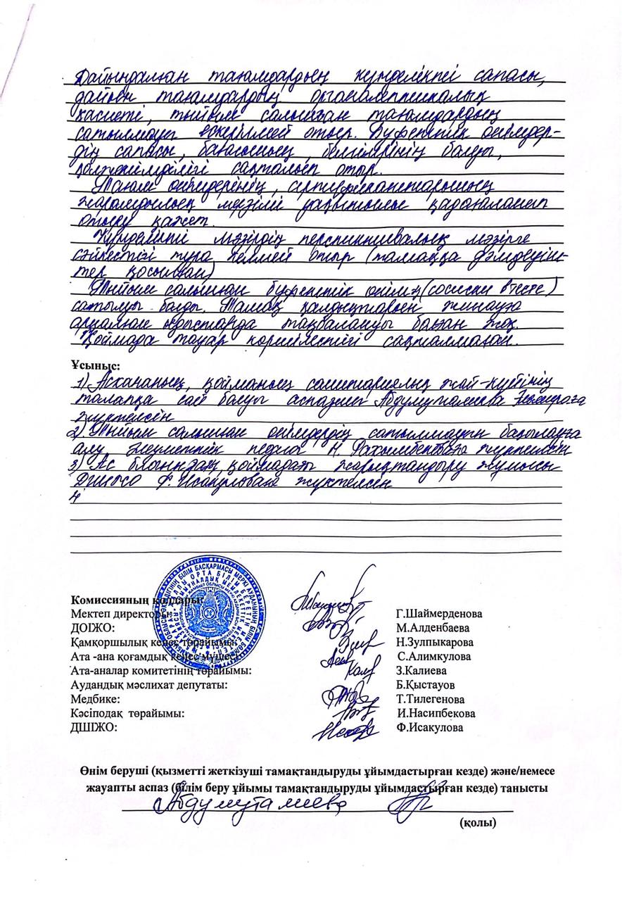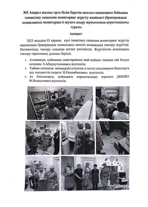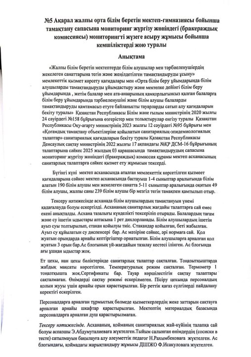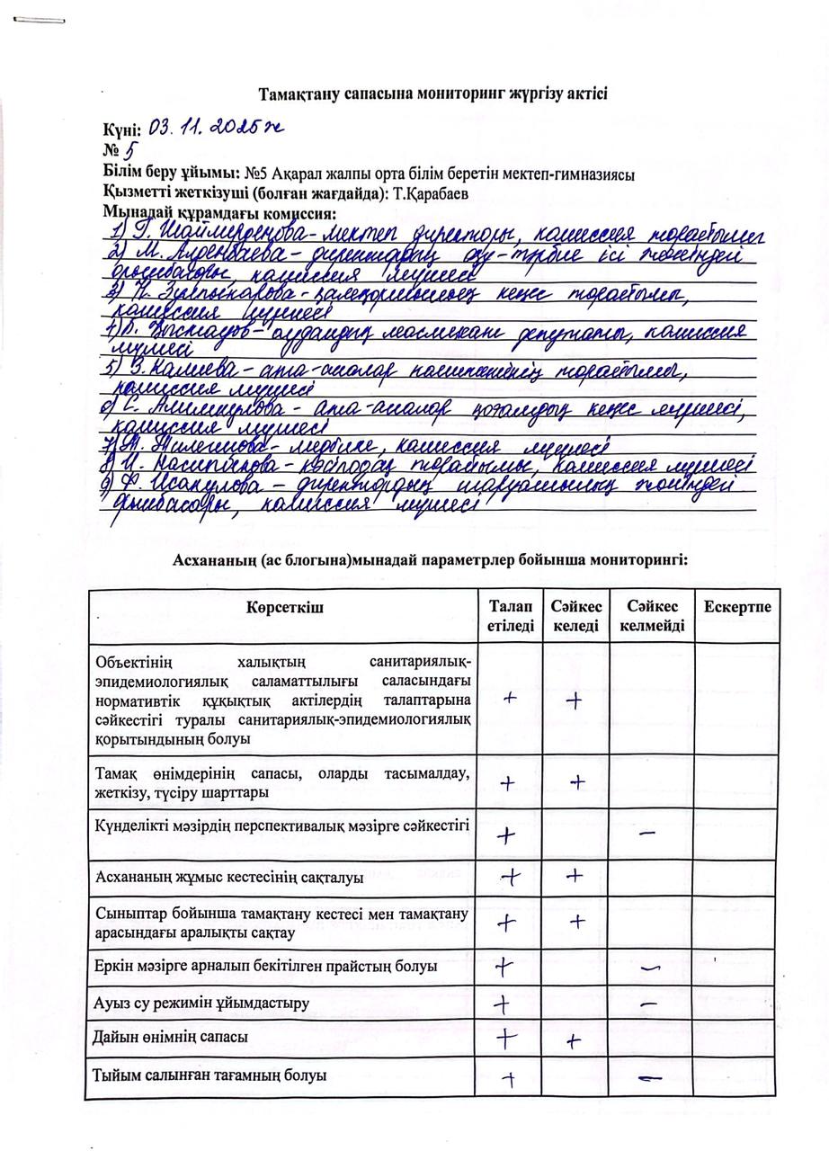 тамақтану сапасына мониторинг жүргізу актісі » ОШГ№5 Акарал