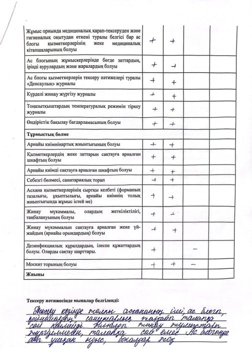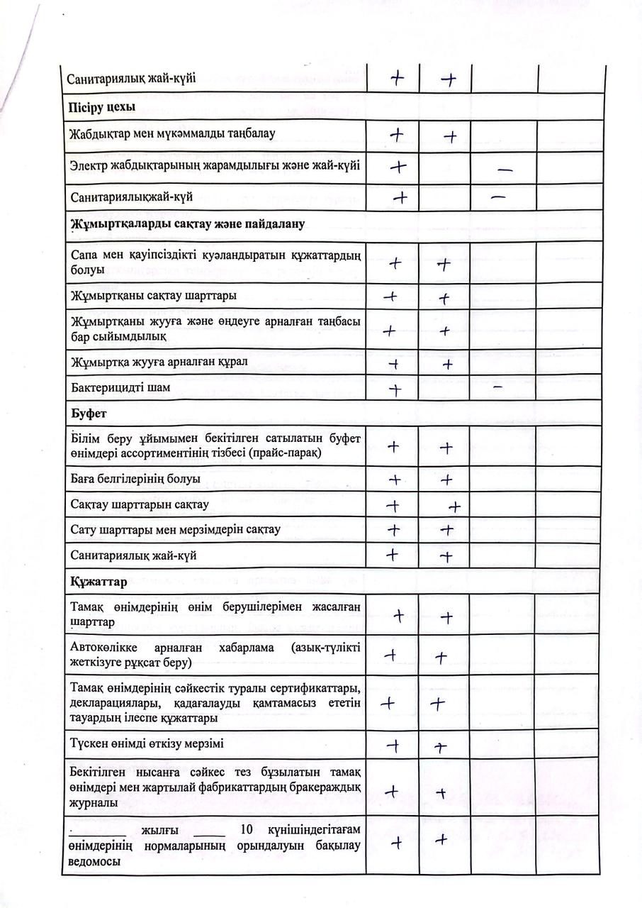» » » тамақтану сапасына мониторинг жүргізу актісі