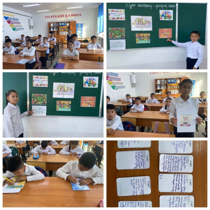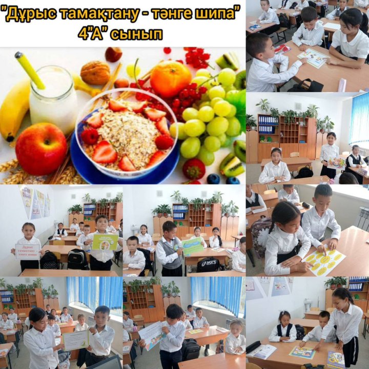 "Дұрыс тамақтану-денсаулық кепілі", "Дұрыс тамақтану-тәнге шипа", "Тиімді әрі пайдалы тамақтану" т.б тақырыбында бірыңғай тәрбие сағаттары